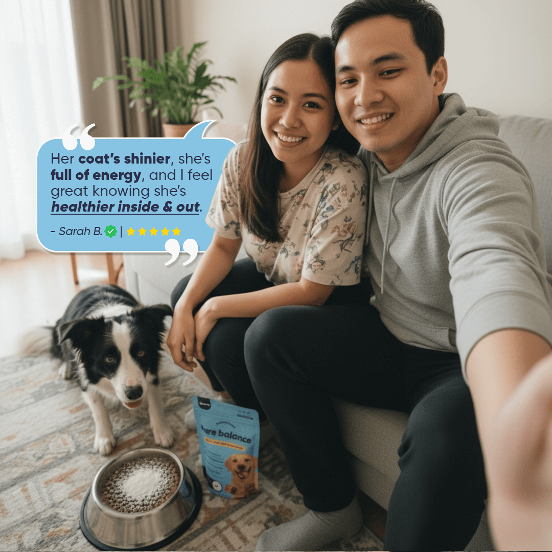 Balance delivers vitamins, minerals, proteins, probiotics, and antioxidants in a single scoop, supporting your dog from the inside out.