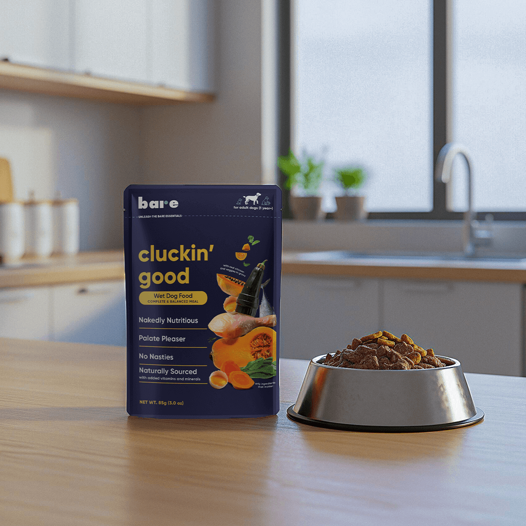 Bare’s Cluckin' Good Adult Wet Food delivers real chicken, veggies, and balanced nutrients for a wholesome, flavorful meal that supports wellness.